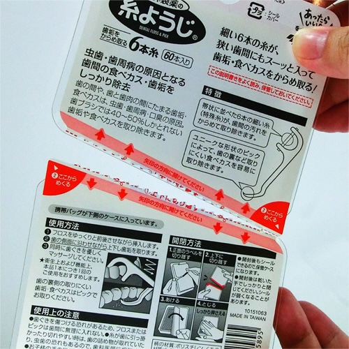 - ●6本糸が歯垢をからめ取る!●全長/85mm●材質/軸:ポリスチレン、糸:ナイロン●シリーズ名/糸ようじ●1パック=60本●ピック形で食べカスが取り除きやすい。
