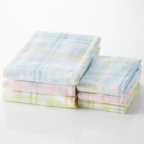 林 ソーダチェック フェイスタオル ブルー FC449151 2枚/袋(ご注文単位1袋)【直送品】