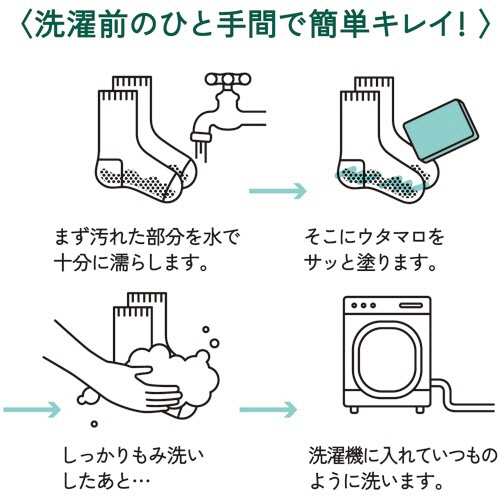 - ●頑固な泥・油汚れも、ぬらしてこすってから洗濯すると、見事な白さに。●洗剤の種類/固形●香り/ハーブ系●内容量/133g●成分/純石けん分98%(脂肪酸ナトリウム)、蛍光増白剤●シリーズ名/ウタマロ※ウタマロ石けんは植物性のリサイクル油を使用しております。●靴下の泥汚れやシャツの襟汚れもスッキリ!●白をいっそう白くします。●使用方法:まず汚れた部分を水で十分ぬらし、ウタマロをサッと塗ります。しっかりもみ洗いして洗濯機に入れていつものように洗います。
