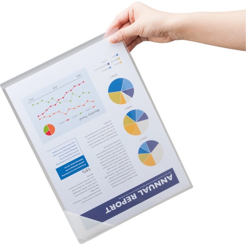 - ●書類が抜け落ちないクリヤーホルダー。●サイズ/A4●色/透明●寸法/タテ310×ヨコ220mm●厚さ/0.2mm●インデックスの有無/なし●材質/再生ポリプロピレン●脱落防止ストッパー付●1パック=10枚※印刷物はよく乾かしてから入れてください。印刷物によっては化学反応を起こし、変形する場合があります。●脱落防止ストッパー付で逆さにしても書類が落ちない、A4サイズ・透明のクリヤーホルダー、10枚入です。