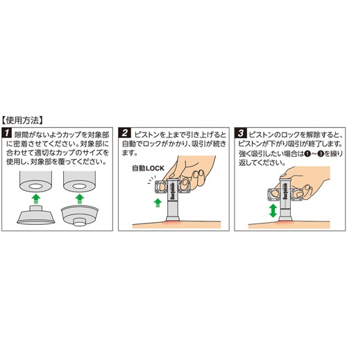 - ●野外活動での虫刺され対策に●寸法/W約110×D35×H110mm●重量/40g●材質/本体:ポリプロピレン、Oリング:ニトリルゴム●生産国/日本※応急処置用製品です。使用後は必ず医師の診察を受けてください。●応急処置用です。●吸引が持続する自動ロック機能付。