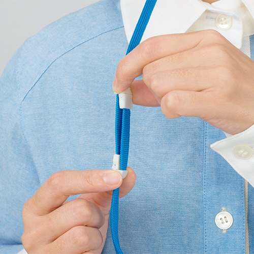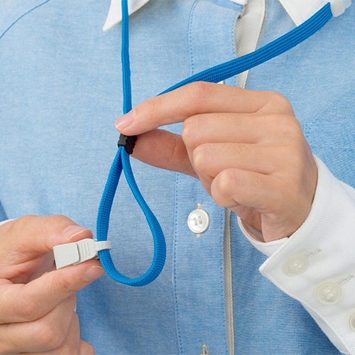 - ●長さ調節が可能な名札用ネックストラップ。●仕様/平ひもタイプ●色/ブラック●ひもサイズ/長さ90cm●長さ調節/可●安全パーツ/あり●材質/ストラップ:ペットボトル再生繊維、クリップ:樹脂●名札用ストラップのブラックです。●長さ調整が可能な機構の安全パーツ付。クリップを動かすことにより安全パーツを好きな位置に移動できます。