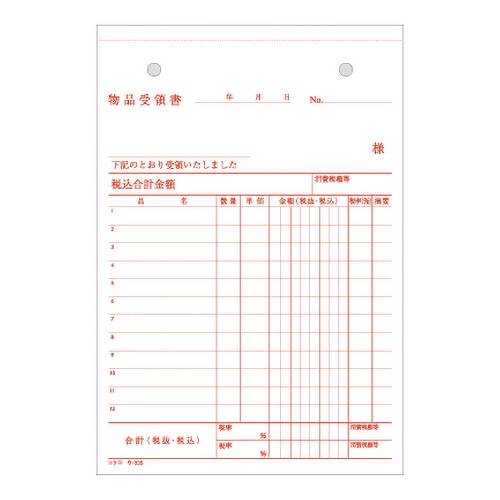 - ●ノーカーボン複写伝票、4枚納品書(請求・受領付)●仕様/納品書、4枚複写(請求・受領付)、ノーカーボン複写、B6タテ●行数/12行●サイズ/タテ188×ヨコ128mm●とじ穴/2穴(幅80mm)●1冊=50組●軽減(複数)税率対応のB6タテ型の納品書です。