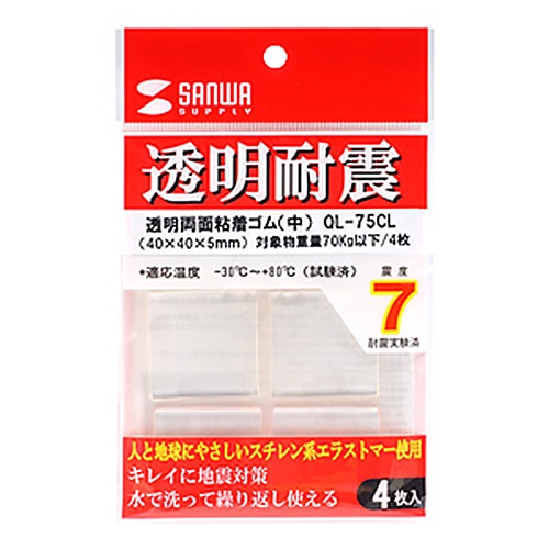 サンワサプライ 透明両面粘着ゴム 中 QL-75CL 1パック(4枚)(ご注文単位1パック)【直送品】