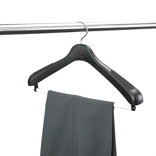 - ●フォルムや素材にこだわったハンガー。●寸法/W430×H260mm●厚さ/46mm●色/ブラック●材質/本体・ホルダー:PP、バー:PVC、フック:スチール、肩パッド:PE※厚さは肩厚です。●すべりを防ぐ肩パッド付ハンガー、430mmです。●大切なVゾーンを美しくキープ。●バーと本体の間隔が広く、掛け外しがラクラク。●肩が厚い丸型形状でラインを内側からキープ。