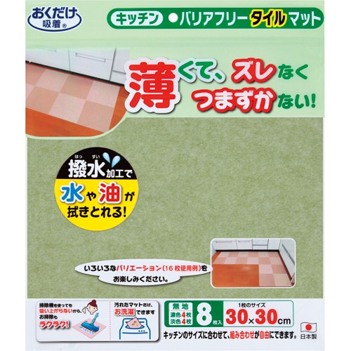 - ●置くだけで取り付け・取り外し簡単。キッチン・リビング・洗面所などの汚れ防止に。●色/グリーン/ライトグリーン●サイズ/1枚:30×30cm●材質/表面:ポリエステル100%、裏面:アクリル樹脂(カテキン入)●セット内容/濃淡各4枚●原産国/日本●1パック=8枚入●薄くてズレず、つまずかない。●撥水仕様でお手入れ簡単。●汚れたところだけ外して洗濯可能。●洗濯しても吸着効果は変わりません。