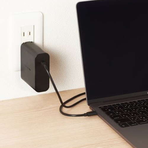 - ●Power Deliveryに対応、対応機種を超高速充電できるUSB AC充電器●コネクタ形状(ケーブル)/USB Type-C(オス)●ケーブル長さ/約2m●寸法/W約74×D83×H31mm●重量/約261g●色/ブラック●定格出力電力/65W●入力電圧/電流/AC100-240V 50/60Hz●出力電圧/電流/5V/3A、9V/3A、12V/3A、15V/3A、20V/3.25A●認証規格/Power Delivery 3.0●電気用品安全法/PSE 特定電気用品●保証期間/1年●Power Deliveryに対応し、対応するノートPCやスマートフォン、タブレットなどを超高速充電できるUSB AC充電器です。●端末に応じて出力が5V/3A、9V/3A、12V/3A、15V/3A、20V/3.25Aと可変し、iPhoneなどのスマートフォンから、Nintendo Switchなどのゲーム機まで幅広く高速充電できます。●ケーブル一体型なので、そのまますぐに使用可能です。●コンセントプラグは180°回転する機構を採用しています。プラグを回転させることで、どんな向きのコンセント挿し込み口でも挿すことができます。タテ・ヨコどちら向きの電源タップに挿しても、隣のコンセント口と干渉することなく使用できます。