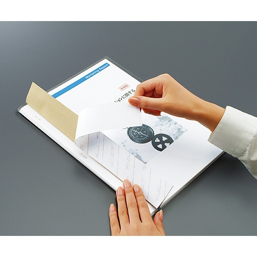 - ●ステープラー(ホッチキス)でとめて貼り付けるだけの簡単製本。薄とじから最大95枚の厚とじまで使える。●サイズ/A4タテ●色/黒●寸法/タテ305×ヨコ250mm●収容枚数/コピー用紙約95枚●表紙厚/0.2mm●材質/本体:R-PP●重量/27g●1パック=5冊※印刷物はよく乾かしてからとじてください。印刷物によっては化学反応を起こし、変形する場合があります。●製本テープ色は黒、5冊パックです。●薄とじから厚とじまで幅広く対応。1枚から95枚までの書類を簡単にステープラー(ホッチキス)で製本できます。●カバーに貼ってある製本テープで、簡単スピーディーに製本可能。ステープル(ホッチキス)どめの製本なので、かさばりません。●中身がよく見える透明PP製カバーです。研修会のテキスト・提案書・企画書・マニュアルなどに好適です。