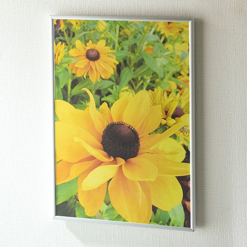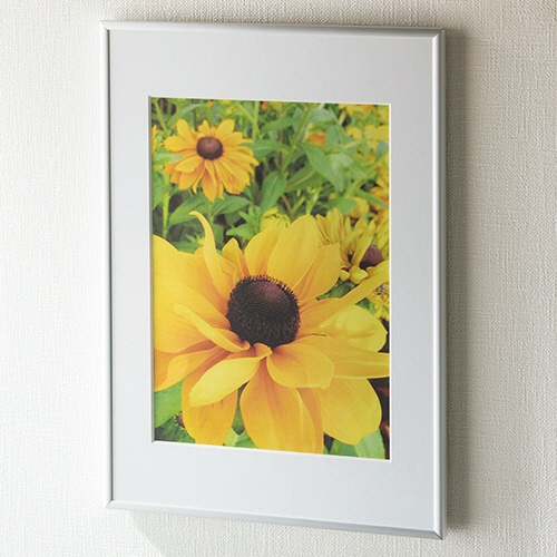 - ●反射が少なく明るい場所でも見やすい。●対応用紙サイズ/A3(A4対応)●寸法/W302×D13×H425mm●重量/510g●色/シルバー●材質/フレーム:アルミ、表面シート:再生PET材(厚み0.6mm)、マット紙(厚み2.5mm)、裏板(黒段ボール)●付属品/吊り下げ金具、吊り下げひも●A3サイズのパネルです。●1つのフレームで2サイズ使用できる。●マット(白枠)あり。●フレームのみでも使用可能。●壁掛け対応。●イーゼル対応。