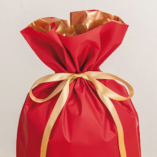 - ●お洒落なリボン付梨地ポリバッグ。●サイズ/450×560[420]×底マチ120mm(サイズの[ ]内はリボン位置から下部までの高さ寸法です。)●色/レッド●厚み/[外袋]0.06mm、[内袋]0.04mm●材質/外袋:ポリエチレン製ソフト型マット調仕上げ、内袋:ポリエチレン製ソフト型、リボン:ポリエチレン製サテン●1パック=20枚●450×560mm、レッドのリボン付きギフトバッグ。●リボンを絞ると内側の袋が見えてツートンカラーになり高級感がアップします。