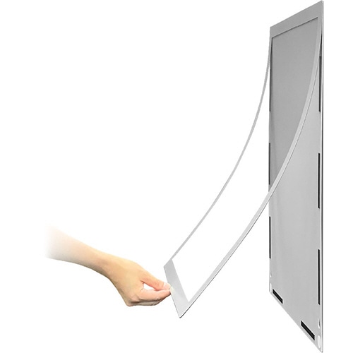 - ●片手でポスターが入れ替えられるフレーム!●対応用紙サイズ/A2●表示寸法/412×586mm●寸法/W466×D4.6×H640mm●重量/1010g●色/シルバー●材質/表面パネル:ポリカーボネート(1mm厚)、背面パネル:白PET(1mm)※ポスターフィットは屋内用のポスターフレームです。屋外への設置はできません。●マグネット固定式のしなやかな表面パネルで、掲示物の差し替えが簡単なA2サイズのポスターフレーム。●下側2ヵ所に磁力の強いネオジム磁石を組み込んでいるため、いたずら等の予期せぬ開きを予防します。●ポスターのカバーとフレームを一体にすることで、片手でめくるだけで簡単にポスターを交換することが可能になりました。●背面パネルにもフレームと同じシルバー印刷を施すことで掲示物が小さい場合やない状態での違和感を低減します。