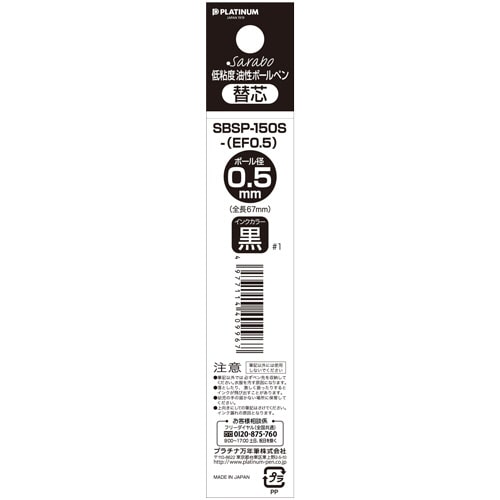 プラチナ 油性ボールペン替芯(低粘度油性) 0.5mm 黒 SBSP-150S-(EF0.5) #1 1本(ご注文単位1本)【直送品】