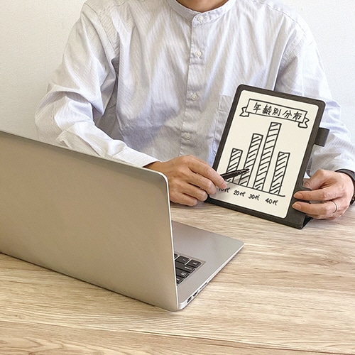 - ●会社・出先・自宅、どこでも使えるモビリティ性能に優れたホワイトボード。●種類/持ち運び用●ボードタイプ/カバー付●寸法/幅310×高さ220×奥行7mm●ボード面サイズ/幅270×高さ200mm●材質/ボード面:ソフト鉄板・PET、カバー:PU、再生紙・磁石・鉄板●付属品/イレーザー付マーカー(黒)●サイズ/S●マグネット可●Sサイズです。●オンラインミーティングでも使いやすい!●カバーがスタンドに変身!書いた文字も消さずに保護。