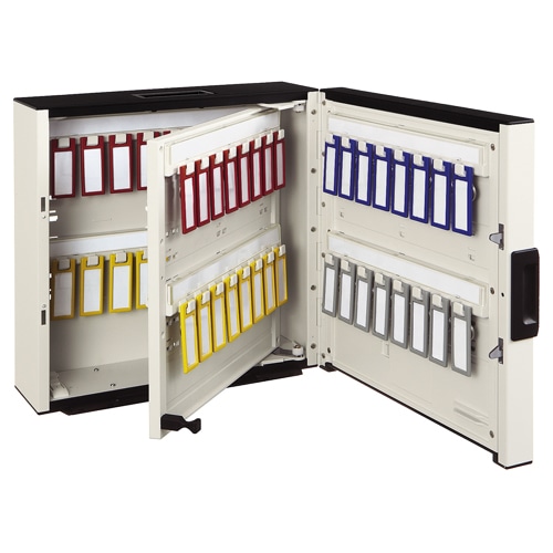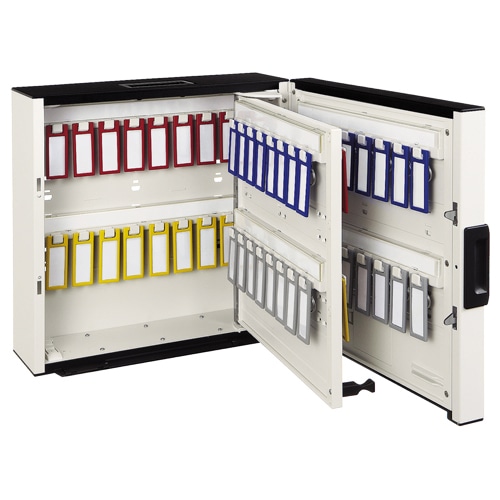- ●セキュリティ性が高く、共有利用に最適なテンキー式。●仕様/キーホルダー64個●サイズ/W317×D124×H310mm●重量/4.84kg●材質/本体:スチール、天地カバー・キーパネル・キーハンガー:R-ABS75%、キーホルダー:PP●付属品/キーホルダー型名札、木ネジ4本、鍵2個●鍵の代わりに暗証番号で管理できるテンキー式