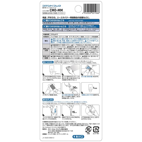 3M コマンドフック 屋外用 ミニメタルフック (フック2個+タブ3枚) CMO-MM 1パック(ご注文単位1パック)【直送品】
