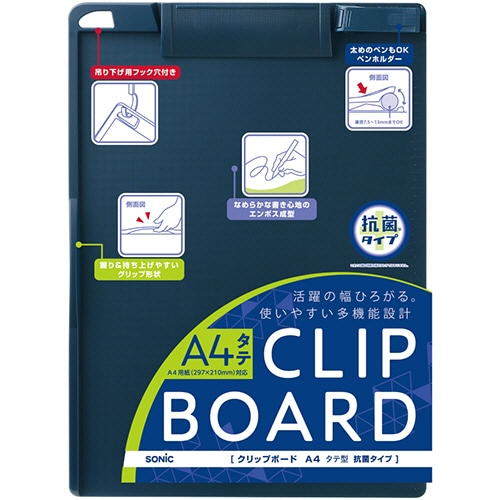 ソニック クリップボード 抗菌タイプ A4タテ ネイビー CB-4831-K 1枚(ご注文単位1枚)【直送品】