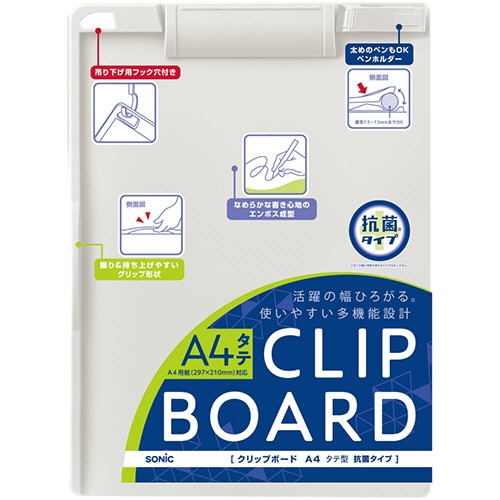 ソニック クリップボード 抗菌タイプ A4タテ アイボリー CB-4831-I 1枚(ご注文単位1枚)【直送品】