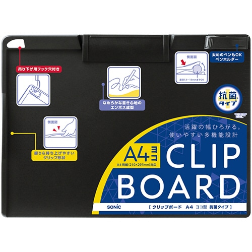 ソニック クリップボード 抗菌タイプ A4ヨコ ブラック CB-5254-D 1枚(ご注文単位1枚)【直送品】