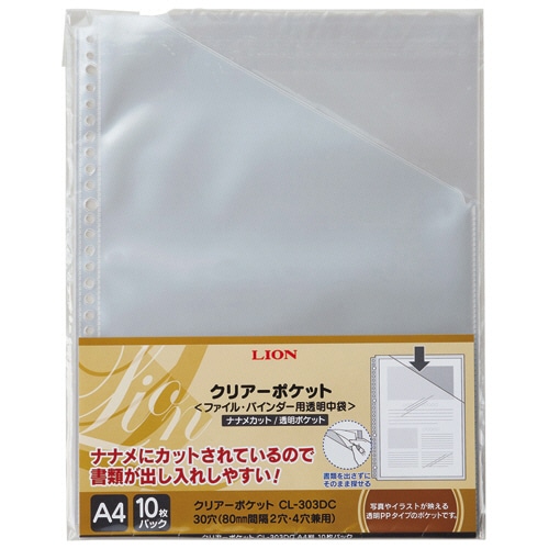 ライオン事務器 クリアーポケット(ナナメカット) A4タテ 2・4・30穴 台紙なし CL-303DC 1パック(10枚)(ご注文単位1パック)【直送品】