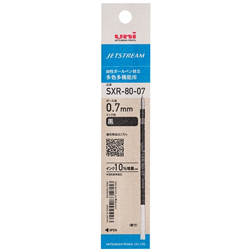 三菱鉛筆 油性ボールペン替芯 紙製パッケージ 0.7mm 黒 ジェットストリーム多色・多機能用 SXR8007K.24 1本(ご注文単位1本)【直送品】
