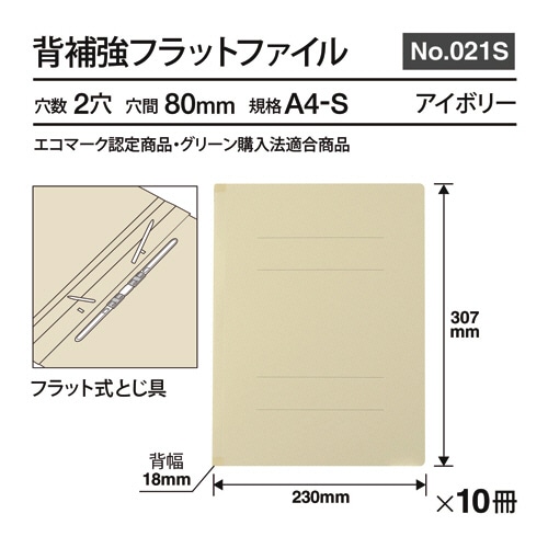プラス 背補強フラットファイル A4タテ 150枚収容 背幅18mm アイボリー No.021S 1パック(10冊)(ご注文単位1パック)【直送品】