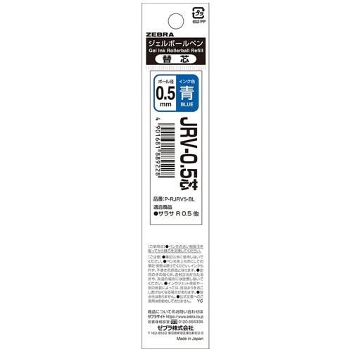 ゼブラ ジェルボールペン替芯 JRV-0.5芯 青 P-RJRV5-BL 1本(ご注文単位1本)【直送品】