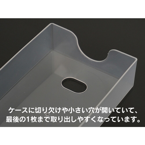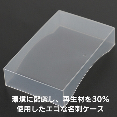 - ●再生材を30%加えた「エコ」な名刺ケースです。●サイズ/名刺サイズ●収容枚数/100~130枚●色/クリア(乳白色)●寸法/W98.4×D62.4×H21.7mm●材質/PP(ポリプロピレン)●収納可能サイズ/W91×D55mm●1箱=100個●再生材を使用した環境に優しいケース、100個です。●割れにくいPP素材ですので、納品時など配当中の破損・衝撃から大切な名刺を守ります。●ケースに「切り欠け」や底に小さい穴が開いており、最後の1枚まで取り出しやすくなっております。●刻印がなく無地のケースです。名刺以外にカード入れに使用するなどさまざまな用途でご利用いただけます。●ケース上蓋部分が重ね式設計になっていますので、名刺100枚はもちろん、130枚の収納が可能です。名刺枚数の厚みが30mm未満の場合におすすめです。