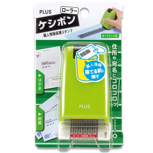 プラス 個人情報保護スタンプ ローラーケシポン 本体 グリーン IS-500CM-B 1個(ご注文単位1個)【直送品】