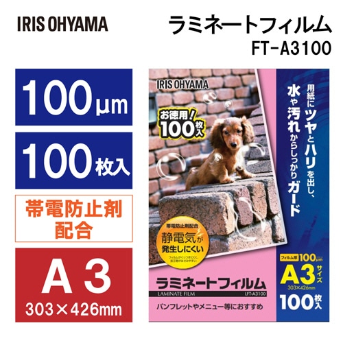 アイリスオーヤマ ラミネートフィルム A3 100μ LFT-A3100 1パック(100枚)(ご注文単位1パック)【直送品】