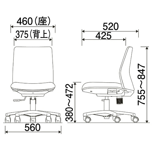- ●小柄な方も足が着きしっかり座れるコンパクトチェア●背張地タイプ/布●寸法/W560×D520×H755~847mm●クッション厚/約45mm●重量/13.2kg●色/ブラウン●座面高さ/380~472mm●座幅/460mm●脚幅/560mm●材質/張地:ポリエステル、座:合板、背:ポリプロピレン、脚:ポリアミド、クッション:ウレタンフォーム●クッション材質/ウレタンフォーム●機能/座ガス上下調節、ロッキング●肘掛け/なし●脚部仕様(キャスター/アジャスター)●脚幅560mmで幅のせまい机にも収まりやすいコンパクトチェア。色はブラウンです。●小ぶりな幅1000mmのデスク内にも幅400mmのワゴンとチェアがピッタリ収まります。