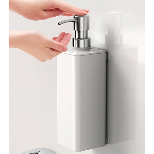 - ●強力マグネットでシステムバスの壁につけて使えます。●容量/650ml●寸法/W74×D91×H243mm●重量/302g●色/グレー●材質/本体:AS樹脂・ラバーマグネット、フタ:AS樹脂、パッキン:シリコーンゴム、すべり止め:ポリウレタン、ポンプ:ABS樹脂(クロームメッキ)・PP・ステンレス鋼・発泡PE●耐荷重/1.0kg●滑り止め付き●生産国/中国●磁石だから取付位置が自在。容量650ml、色はグレーです。●底面が湾曲しており内容物を最後まで使い切れる。●床から浮かせて設置するので容器の底が汚れにくい。●詰め替え用パックをそのまま入れて使える。(※詰め替え用パックをそのまま入れる場合の対応サイズ:400ml以内のもの)