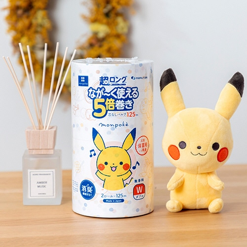 丸富製紙 トイレットペーパー モンポケ 5倍巻き パルプ ダブル 芯なし 125m 1パック(2ロール)(ご注文単位1パック)【直送品】