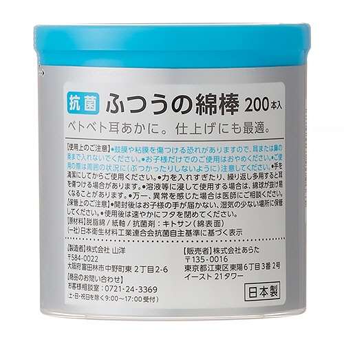 山洋 CARELAGE 抗菌ふつう綿棒 1パック(200本)(ご注文単位1パック)【直送品】