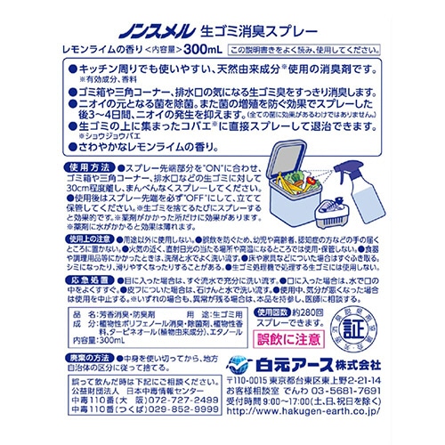 白元アース ノンスメル 生ゴミ消臭スプレー 300ml 1本(ご注文単位1本)【直送品】