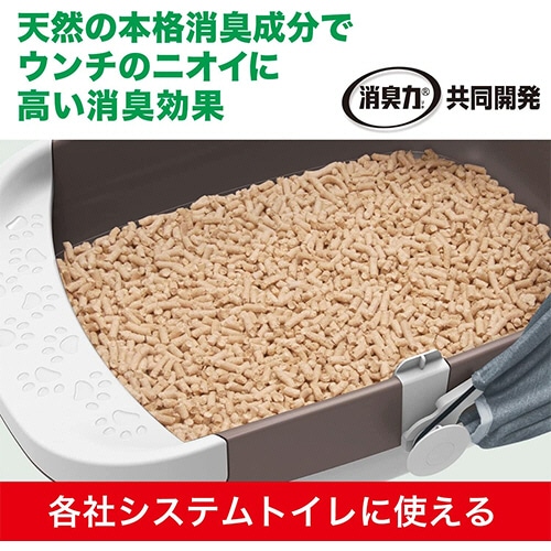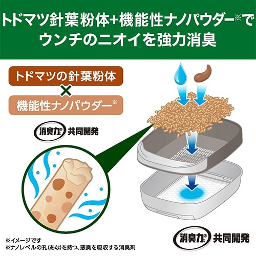 - ●ウンチのニオイも気にならない!●種類/トイレ用チップ●内容量/2.5L●製造国/日本●成分/北海道産トドマツ針葉粉体、国産ヒノキ木粉、消臭剤、でんぷん類、撥水剤、抗菌剤、抗カビ剤●使用期間の目安/[猫ちゃん1頭の場合]1袋で約1ヵ月、[猫ちゃん2頭の場合]1袋で約2週間※使用期間の目安は、猫ちゃんの体重、体調、尿量、季節等によって変化します。●天然の本格消臭成分、北海道産モミの木(トドマツ)の粉体と機能性ナノパウダー配合で、オシッコだけでなく、ウンチのニオイにも高い消臭効果を発揮するトイレ用チップ、2.5L入です。●オシッコで固まらないサラサラなチップなので、猫ちゃんの足元が汚れにくいです。●飛び散らず、粉が出にくいチップなので、お掃除も簡単です。●抗菌仕様のチップです。(※すべての菌に効果があるわけではありません。)