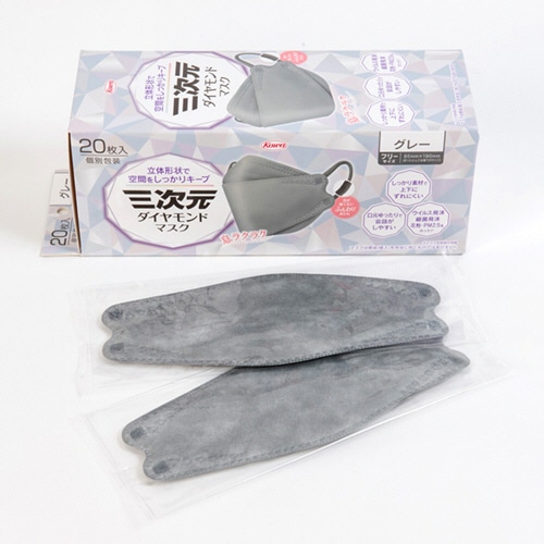 興和 三次元ダイヤモンドマスク フリーサイズ グレー 個包装 1箱(20枚)(ご注文単位1箱)【直送品】