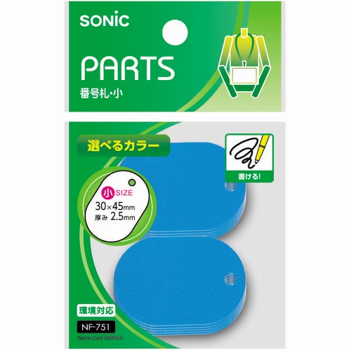 ソニック 番号札 小 無地 青 NF-751-B 1セット(100個:10個×10パック)(ご注文単位1セット)【直送品】