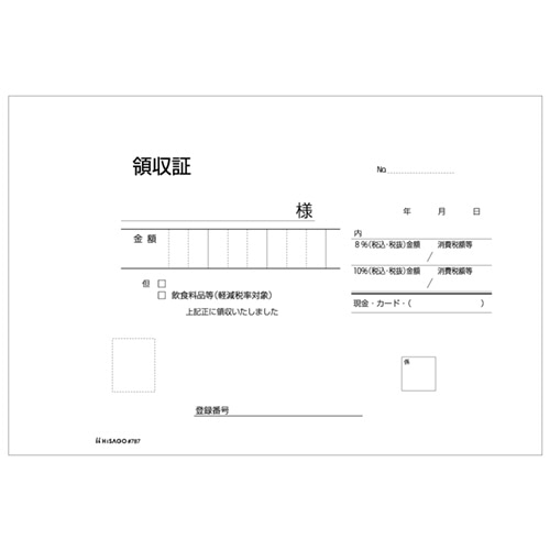ヒサゴ 領収証 B6ヨコ型 2枚複写 50組 #787 1セット(10冊)(ご注文単位1セット)【直送品】