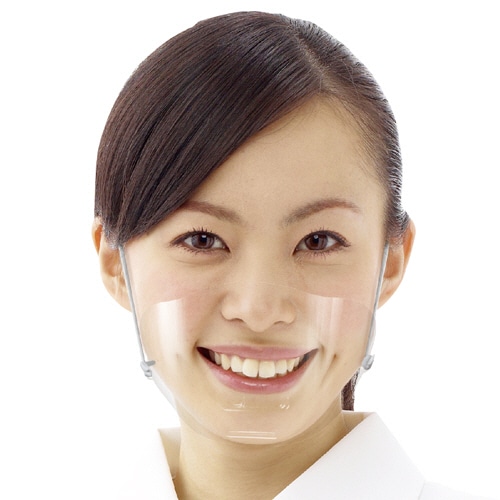 - ●2WAYタイプのクリアーマスク。●サイズ/フリー●色/クリアー●材質/本体:PET、耳ゴム:PE・PU、リング:シリコン●生産国/日本●1パック=30個●ゴム紐を付けかえることで耳掛け、オーバーヘッドのどちらでも使用が可能。30個入です。●装着時も笑顔で会話でき、唾や域の飛散を防止。密着しないので、ムレや息苦しさがなく快適な使用感。●繰り返し使用できるので経済的です(10日間前後を目安に、汚れがひどい場合はご使用をお控えください)。