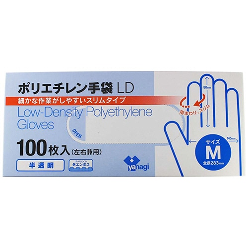 やなぎプロダクツ ポリエチレン手袋LD 半透明 M TB-165 1パック(100枚)(ご注文単位1パック)【直送品】