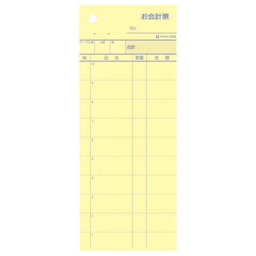 ヒサゴ お会計票 70×175mm 2枚複写 ミシン目10本入 業務用パック 3252E 1セット(6000組:1200組×5箱)(ご注文単位1セット)【直送品】