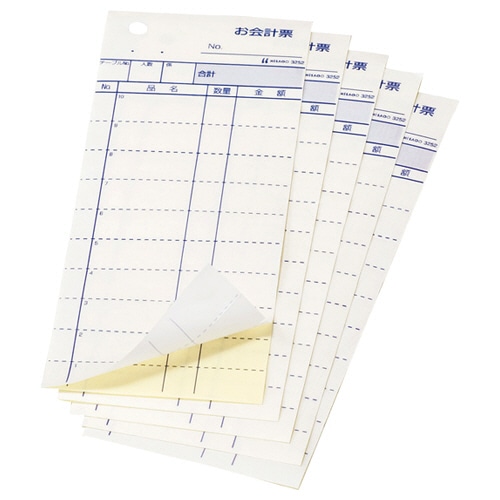 - ●一行ごとにミシン目が入っており、切り離せます。●寸法/タテ175×ヨコ70mm●伝票タイプ/複写式●複写枚数/2枚●行数/10行●カーボン/ノーカーボン●消費税欄/無●刷色/青紫●複写内訳/(1枚目)お会計票、(2枚目)お会計票●1セット=1200組×5箱※1枚目にミシン目10本入※箱入(1組ごとにバラ入)(箱は使用後の伝票保管箱として利用できます。)●ノーカーボン複写、1200組×5箱のセットです。●複写のセットごとにのりづけされて箱に入っています。