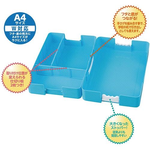 - ●持ち運び便利な手さげ付きのおどうぐばこ。●色/イエロー●外寸/W345×D233×H64mm●材質/本体・ストッパー・仕切り板:PP、手さげ:PE●重量/約580g●付属品/名前シール、仕切り板2枚●生産国/日本●1セット=20個※重量は包装資材含む●開け閉めしやすいストッパーと手さげ付きのおどうぐばこ、イエローの20個セットです。●取り付け位置を変えられる仕切り板も2枚付いています。●フタと底がつながる!手さげを組み合すことで、学校引き出しとして使用できます。●小物からA4の教科書までダブルで入ります。