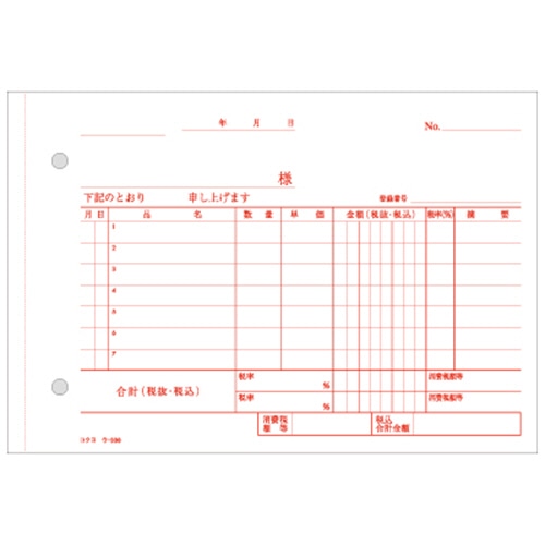 - ●書くと圧力で発色するノーカーボンタイプ。●サイズ/B6ヨコ●寸法/タテ128×ヨコ188mm●伝票タイプ/複写式●複写枚数/3枚●行数/7行●カーボン/ノーカーボン●1セット=50組×5冊※2019年10月1日から施行される軽減税率制度対応商品を順次出荷しております。新仕様・旧仕様のご指定は承っておりません。●3枚複写の仕切書、B6ヨコ型です。5冊セットです。●圧力で発色し、手が汚れにくいノーカーボン紙タイプ。書いてすぐにきれいでクリアな発色を実現します。●中紙にはオリジナルのマイクロカプセルを使用し、2枚目以降もきれいに発色。