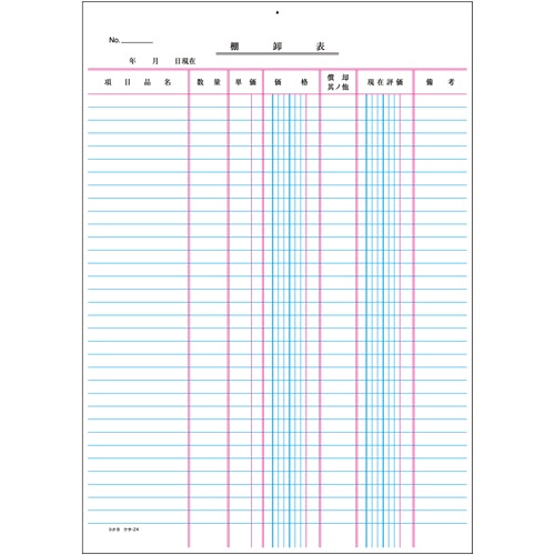 コクヨ 決算用紙 棚卸表 A4 厚口上質紙 33行 20枚 ケサ-24N 1冊(ご注文単位1冊)【直送品】