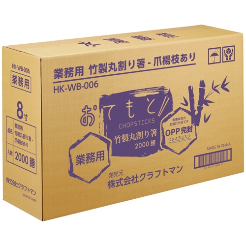 クラフトマン 業務用丸竹OPP完封箸 爪楊枝あり HK-WB-006 1セット(2000膳:100膳×20パック)(ご注文単位1セット)【直送品】