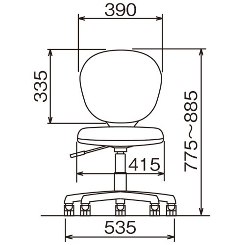 - 革に似た質感のPVCレザー、お手入れ簡単。●背張地タイプ/PVCレザー●寸法/W535×D560×H775~885mm●重量/7.5kg●色/ブラック●座面高さ/440~550mm●座幅/415mm●脚幅/535mm●材質/張地:PVCレザー(抗菌)、背・座面:PP、脚・キャスター:ナイロン、クッション:ウレタンフォーム●クッション材質/ウレタンフォーム●機能/座ガス上下調節、ロッキング●肘掛け/なし●脚部仕様(キャスター/アジャスター)/キャスター●必要工具/プラスドライバー●製造国/中国●クッション厚/57mm※お客様組立商品となります。