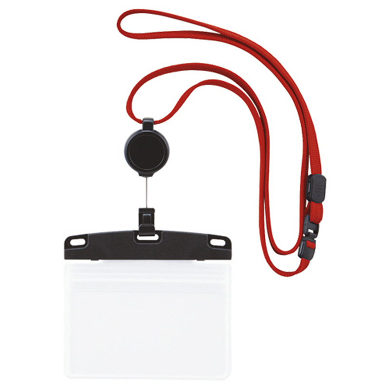 オープン工業 吊下げ名札 リール式 ソフトタイプ ヨコ名刺サイズ 2枚収納 赤 NL-27P-RD 1個(ご注文単位1個)【直送品】