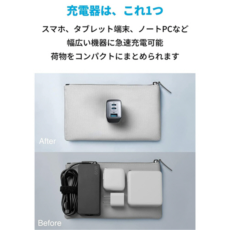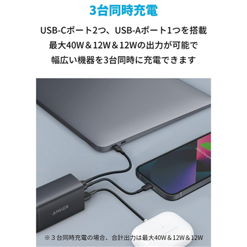 アンカージャパン 急速充電器 ANKER PowerPort III /65W 3ポート Pod PD対応 ブラック A7N00ZP 1個(ご注文単位1個)【直送品】