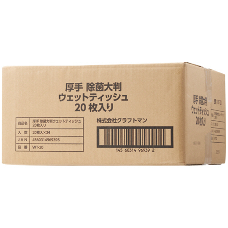 クラフトマン 除菌 ウェットティッシュ 大判 厚手 ノンアルコールタイプ WT-20 480枚/1セット(ご注文単位1セット)【直送品】